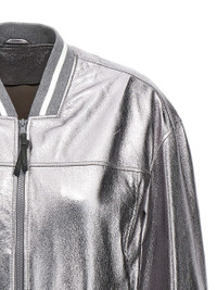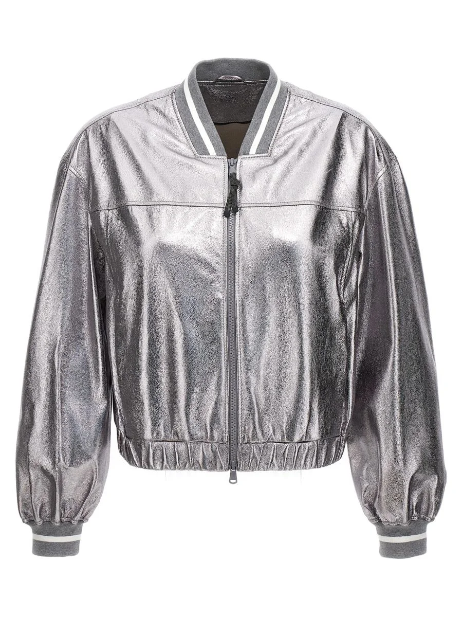 Metallic bomber jacket from BRUNELLO CUCINELLI featuring silver-tone, cotton, metallic finish, band collar, long sleeves, front zip fastening and two side slit pockets Gender: Women Material: COTTON Made in: IT Product ID: MPGAM2917C8755 *Import tax/duty will be calculated at checkout (If applicable)