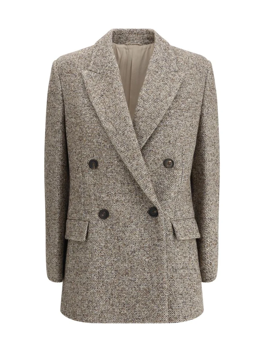 BRUNELLO CUCINELLI'S VIRGIN WOOL AND SILK MELANGE JACKET INTERPRETS SARTORIAL ELEGANCE WITH REFINED AND PRECIOUS DETAILS. THE PEAKED LAPEL EMPHASIZES THE CLASSIC CONSTRUCTION OF THE GARMENT, ENRICHED BY THE HORN BUTTON CLOSURE THAT ENHANCES THE CRAFTSMANSHIP. WELT POCKETS AND BREAST POCKET GIVE A FUNCTIONAL TOUCH, WHILE THE SILK-BLEND CREPE LINING ENSURES COMFORT AND LIGHTNESS. NICKEL-FREE JEWEL DECORATION DISCREETLY ILLUMINATES THE DESIGN, MAKING THE GARMENT A TIMELESS STYLE STATEMENT. RTW IT Gender: Women Material: FLEECE WOOL | SILK | NYLON Color: MULTICOLOUR Made in: Imported Product ID: MG5307521_C6286 *Import tax/duty will be calculated at checkout (If applicable)