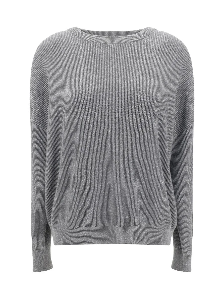 BRUNELLO CUCINELLI'S COTTON SWEATER IS A REFINED AND VERSATILE GARMENT PERFECT FOR ANY SEASON. THE RIBBED CREW NECK GIVES A CLEAN, CLASSIC SILHOUETTE, WHILE THE RIBBED CUFFS AND HEM ENSURE A SNUG, COMFORTABLE FIT. THE RIBBED DESIGN LENDS TEXTURE TO THE FABRIC, WHILE THE SILVER THREAD RUNNING THROUGH THE KNIT ADDS A DELICATE LUMINOUS GLOW, MAKING THE SWEATER ELEGANT AND SOPHISTICATED. STANDARD Gender: Women Material: COTTON | VISCOSE | METAL METALLIC METALLISED Color: GREY Made in: Italy Product ID: MAZ260200_CXP07 *Import tax/duty will be calculated at checkout (If applicable)