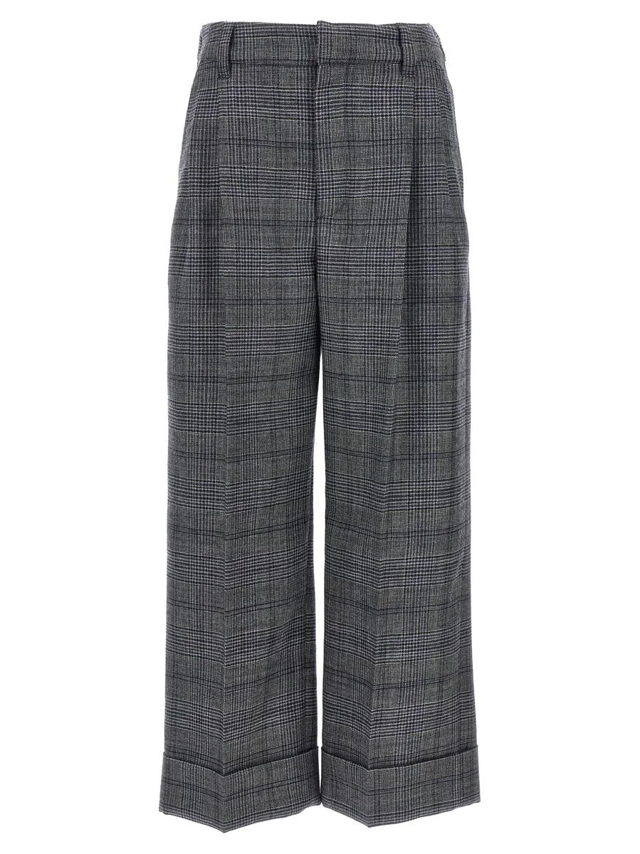 Houndstooth patterned wool trousers, pleats, stretched pleat, wide leg, zip hook and front button closure, elastic waistband, pockets, turn-up on the leg bottom, back Monile detail Gender: Women Material: 100% VIRGIN WOOL Color: GRAY Made in: Italy Product ID: MP522P9017C4227 *Import tax/duty will be calculated at checkout (If applicable)
