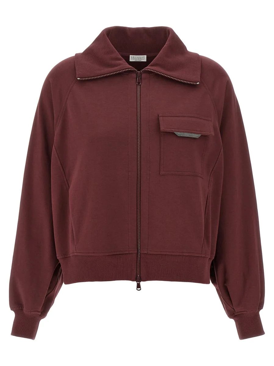 Refined Brunello Cucinelli materials are paired with the casual style of the Travelwear line, dedicated to moments of relaxation and leisure. Precious details and a sporty attitude come together in this stretch cotton lightweight French terry sweatshirt. The fabric’s smooth, soft texture is paired with a shiny monili embroidery that illuminates the chest pocket for a sparkling note in true Brunello Cucinelli style. MATERIALS The stretch characteristic of the lightweight cotton French terry makes the garment comfortable to wear. DETAILS Two-way zip closure Upper pocket with flap Hand pockets Rib knit cuffs and bottom band Nickel-free monili decoration 98% COTTON, 2% ELASTANE