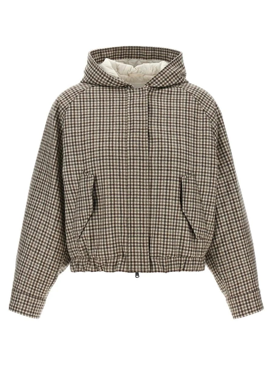 Brunello Cucinelli Shiny Zipper Pull Check-print Jacket