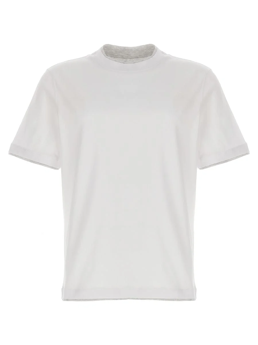 Cotton jersey round neck slim fit T-shirt with faux-layering