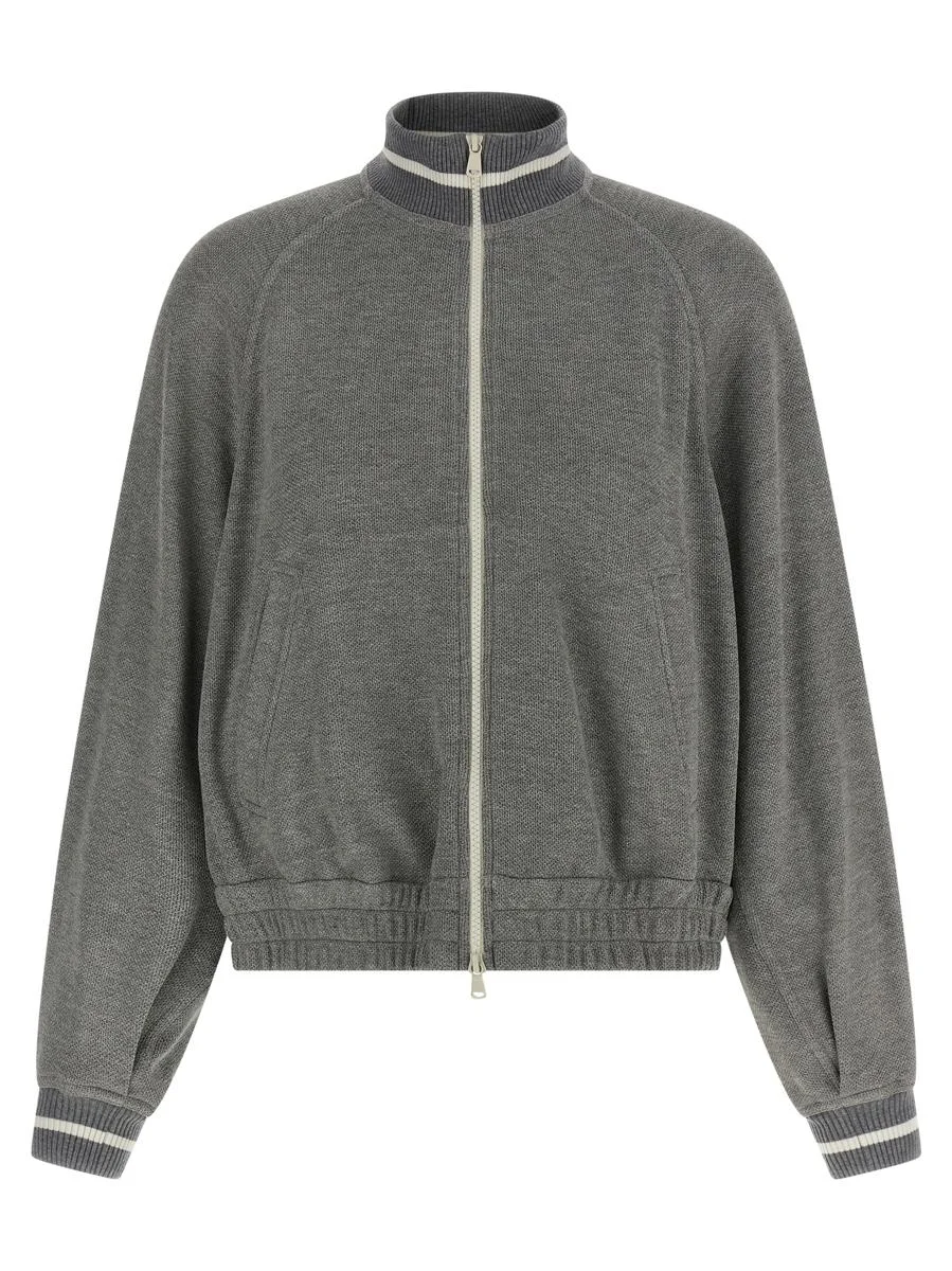 Cotton and viscose 'Sparkling' pique sweatshirt with lame thread and stretch ribbed knit details, cropped bomber jacket styles, high neck, front zip closure, pockets, long sleeves with cuffs and dropped shoulders Gender: Women Material: 62% VISCOSE 33% COTTON 5% POLYESTER Color: SILVER Made in: Italy Product ID: MP930SN806C4527 *Import tax/duty will be calculated at checkout (If applicable)