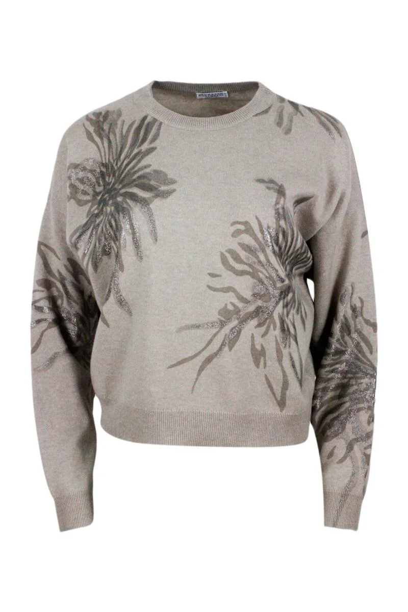 Long-sleeved round-neck wool, silk and cashmere sweater with flower print embellished with lurex Gender: Women Material: 60% WOOL 30% CASHMERE 10% SILK Color: BROWN Made in: IT Product ID: M16128700.C2726 *Import tax/duty will be calculated at checkout (If applicable)