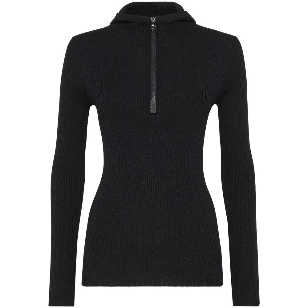 Sweater Black Fixed hood Zip closure Long sleeves Straight hem Ribbed knit Stretch cotton Regular fit Gender: Women Material: 100% COTTON Color: Black Made in: Imported Product ID: M41844609C101 *Import tax/duty will be calculated at checkout (If applicable)