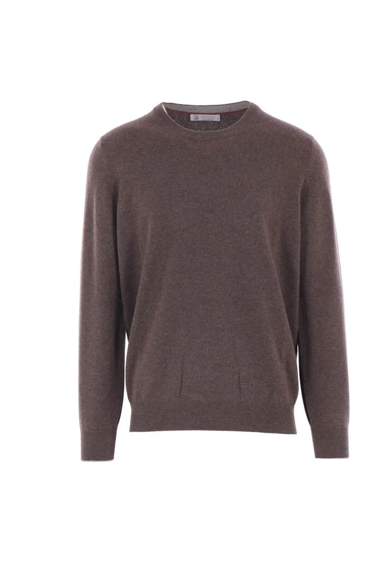 Brunello Cucinelli sweater made of dark brown cashmere knit. Featuring a crew neckline, long sleeves, cuffs with contrasting trim, ribbed edges, and a straight hem. Gender: Men Material: " (T2000) 100%CASHMERE" Color: MOOR+LIGHT GRAY Made in: Italy Product ID: M2200100CU766 *Import tax/duty will be calculated at checkout (If applicable)