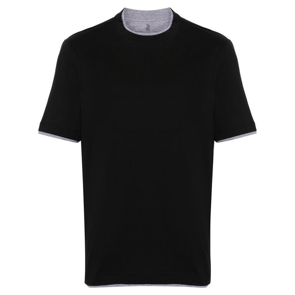 Black cotton jersey texture layered effect crew neck short sleeves straight hem Gender: Men Material: COTTON: 100.0% Color: Black Made in: IT Product ID: M0B137427 CCB75 *Import tax/duty will be calculated at checkout (If applicable)