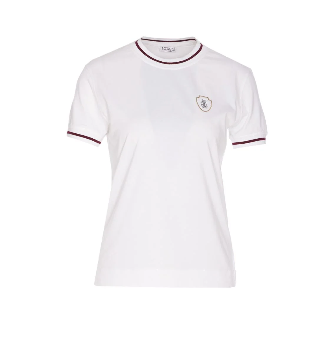 Brunello Cucinelli White T-Shirt, Crewneck, Contrasting Profiles, Embroidered Logo On Front, US SIZE Gender: Women Material: 100%COTTON Color: WHITE Made in: Italy Product ID: M0T81VD110CGV62 *Import tax/duty will be calculated at checkout (If applicable)