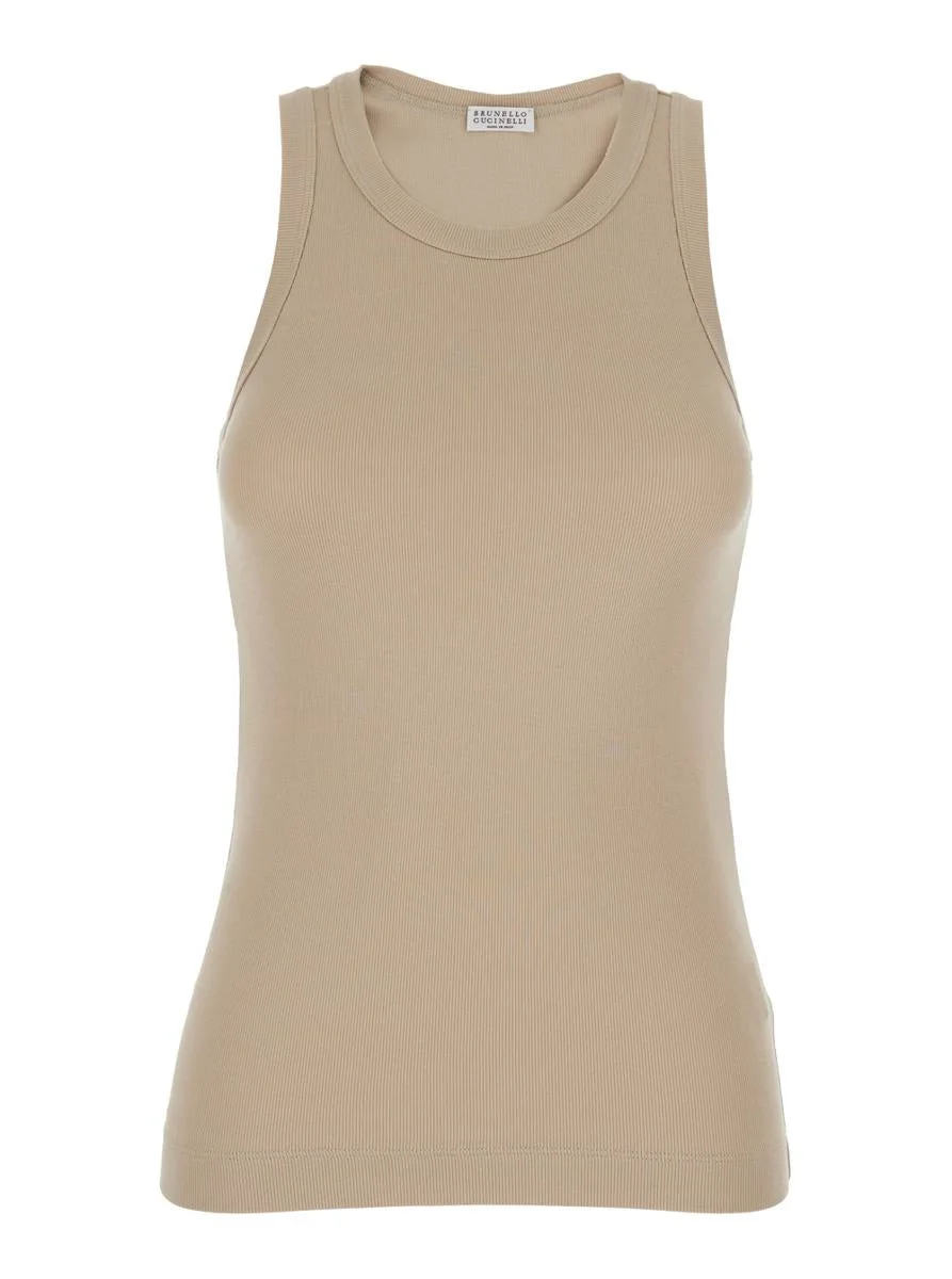 Brunello Cucinelli tank top crafted in beige ribbed cotton jersey with the iconic label embroidered in fine rows of monili on the back. It features wide neckline and straight hem. Gender: Women Material: 94%COTTON 6%ELASTANE Color: Beige Made in: IT Product ID: M0TC8FX230C8539 *Import tax/duty will be calculated at checkout (If applicable)
