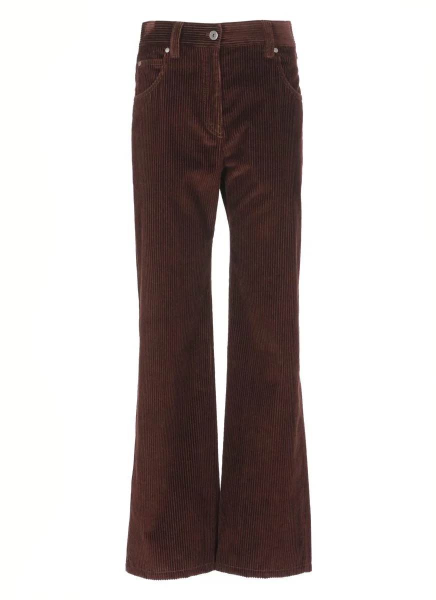 - Bordeaux Cucinelli cotton pants for woman - Belt loops - Front zip and button fastening - Two slit side pockets - Two rear welt pockets - All-over ribbed pattern Model's height is 179 cm and she wears a size 40 Gender: Women Material: 100% COTTON Color: Red Made in: Italy Product ID: MA180P9075C4243 *Import tax/duty will be calculated at checkout (If applicable)