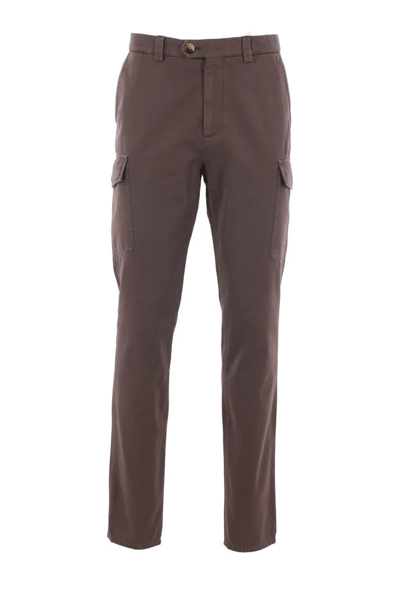 Brunello Cucinelli cargo trousers made of brown cotton gabardine. Featuring a front closure with hook, button, and zipper, belt loops, and multiple pockets. Gender: Men Material: (T252P) 100%COTTON Color: BROWN Made in: Italy Product ID: M252UE1890C6026 *Import tax/duty will be calculated at checkout (If applicable)