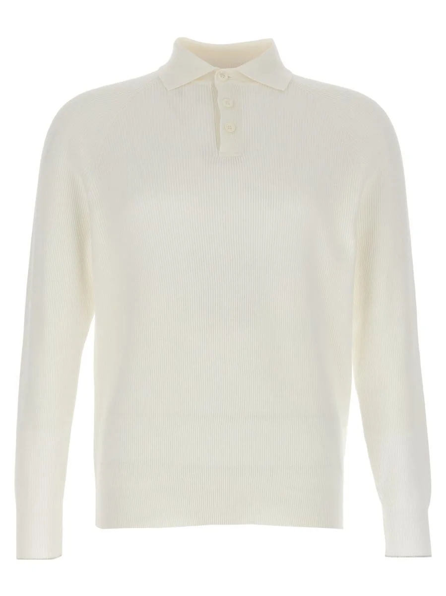 Ribbed cotton knit polo shirt with long cuffed sleeves Gender: Men Material: 100% COTTON Color: WHITE Made in: Italy Product ID: M29400105CO312 *Import tax/duty will be calculated at checkout (If applicable)