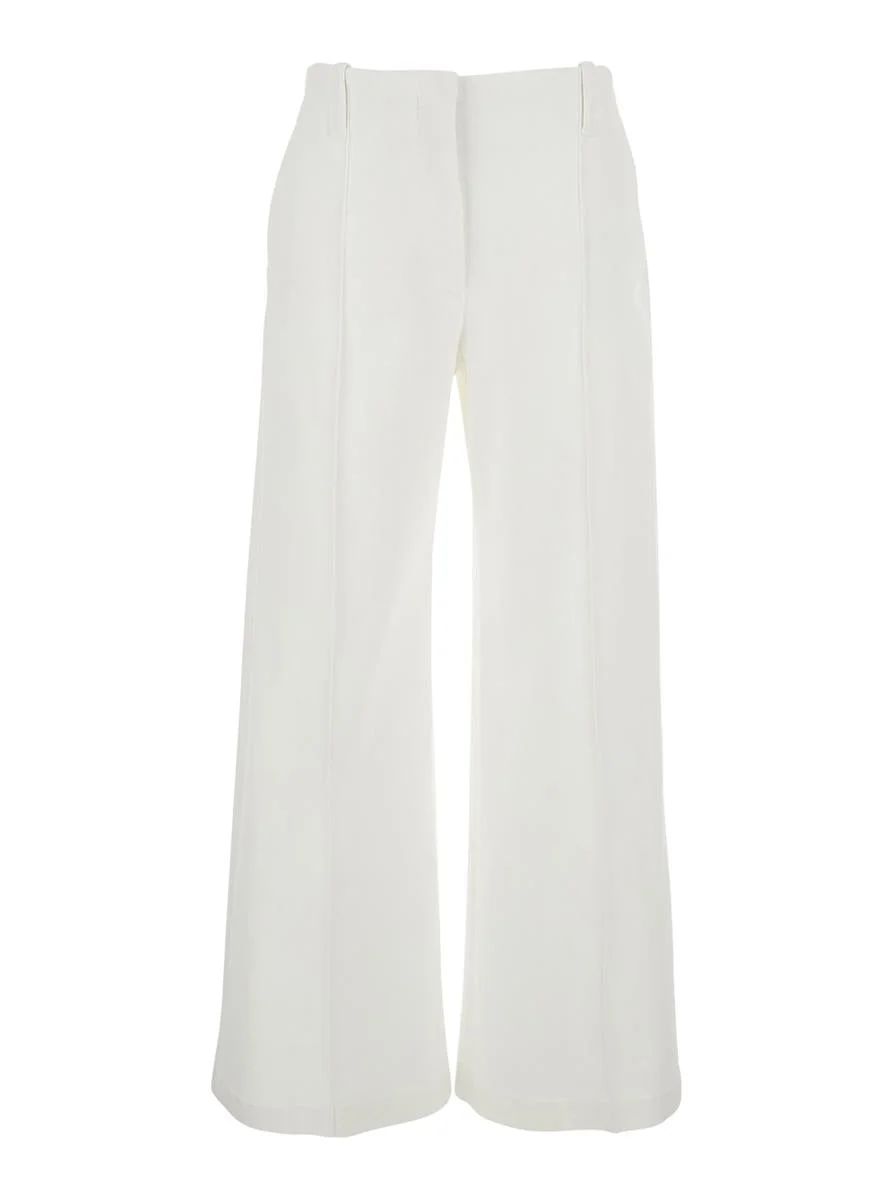 Brunello Cucinelli White Flared Pants With Belt Loops And Monil Detail On The Loop In Cotton Stretch