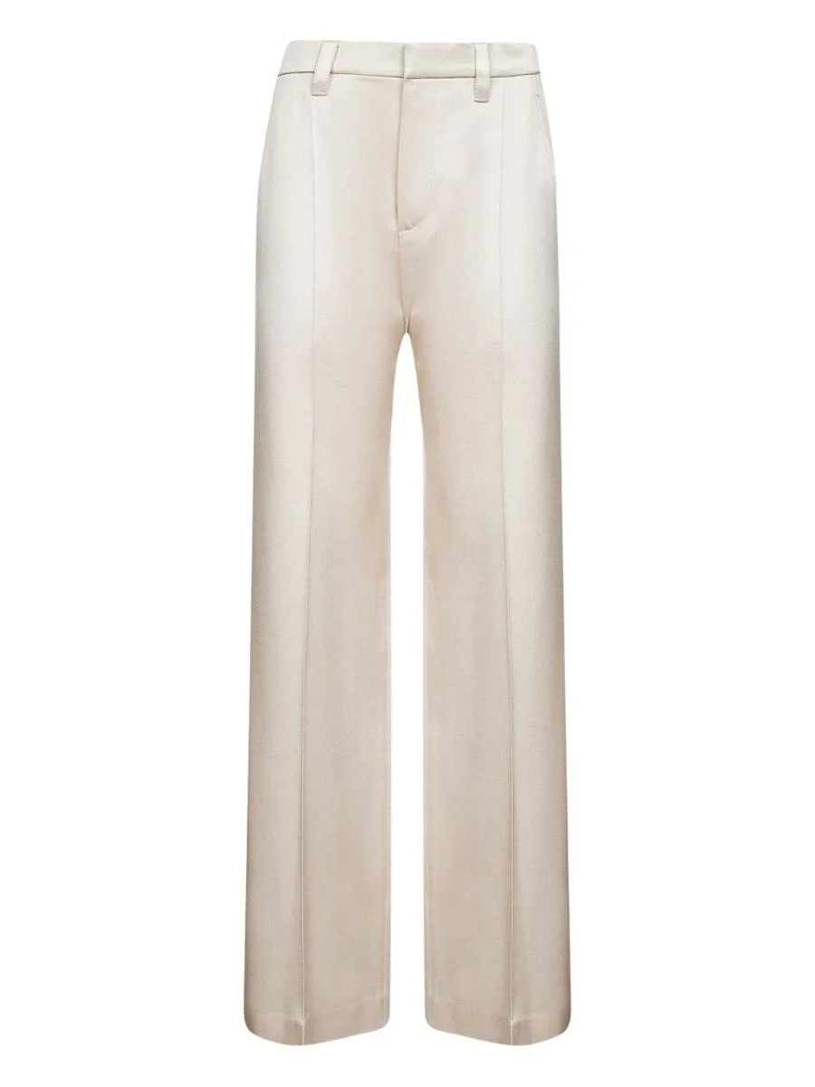 beige pressed creases wide leg front closure side pockets back patch pockets Gender: Women Material: ACETATE 61%, VISCOSE 39% Color: WHITE Made in: Italy Product ID: M0H38P8724C9597 *Import tax/duty will be calculated at checkout (If applicable)