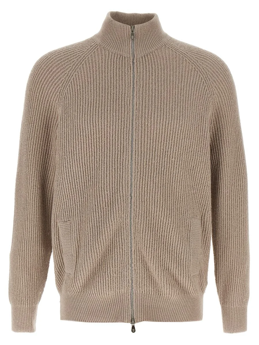 English half-ribbed cotton gauze cardigan, high neck, zip closure, pockets, long cuffed sleeves Gender: Men Material: 100% COTTON Color: Beige Made in: IT Product ID: MNI708616C2438 *Import tax/duty will be calculated at checkout (If applicable)