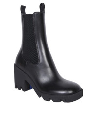 Leather ankle boots by Burberry Roundtoe. Slip-on style. Gender: Women Material: 50% CALF LEATHER 40% POLYESTER 10% ELASTANE Color: Black Made in: Imported Product ID: 8076546 A1189 *Import tax/duty will be calculated at checkout (If applicable)