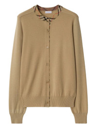 Almond beige pure wool Burberry cardigan with iconic check pattern. Front button closure, long sleeves and ribbed trim. A timeless garment that combines comfort and British style. Perfect for elegant and versatile looks. Discover it now. Gender: Women Material: WOOLOL | WOOL 100% Color: Beige Made in: Imported Product ID: 8112164_A3743 FLAX *Import tax/duty will be calculated at checkout (If applicable)