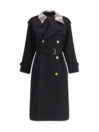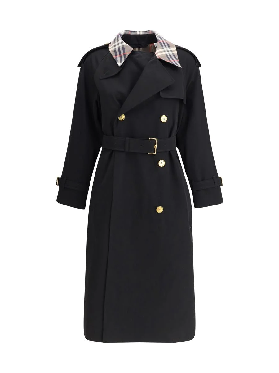 BURBERRY'S CASTLEFORD LONG TRENCH COAT IS A MASTERPIECE OF ELEGANCE AND FUNCTIONALITY, CRAFTED FROM RAIN-RESISTANT GABARDINE THAT'S PERFECT FOR BRAVING THE ELEMENTS IN STYLE. THE REGULAR FIT AND RAGLAN SLEEVES ENSURE COMFORT AND FREEDOM OF MOVEMENT, WHILE METALLIC ELEMENTS WITH AN ANTIQUED FINISH ADD A SOPHISTICATED TOUCH. THE DOUBLE-BREASTED BUTTON CLOSURE AND THE BRAND'S SIGNATURE B-BUCKLE BELT COMPLETE THE REFINED DESIGN. SIDE WELT POCKETS AND STRAPPY CUFFS CONTRIBUTE TO THE GARMENT'S PRACTICALITY, WHILE THE BACK SLIT AND COLLAR DECORATED WITH THE CLASSIC BURBERRY CHECK, ALONG WITH THE INNER LINING WITH THE SAME PATTERN, MAKE THIS TRENCH COAT A TIMELESS STYLE ICON. RTW UK Gender: Women Material: COTTON Color: Black Made in: Greece Product ID: 8113633_A1189 *Import tax/duty will be calculated at checkout (If applicable)