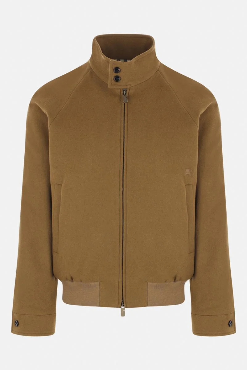 Burberry's bomber jacket crafted in light brown cashmere cloth with Equestrian Knight Design embroidered at chest. It features high neck, double-slider zip closure, welt pockets, long sleeves with buttoned cuffs and ribbed knit edges. Burberry Check cotton lined interior. Gender: Men Material: 100%CASHMERE Color: SHREW Made in: RO Product ID: 8098510C1432 *Import tax/duty will be calculated at checkout (If applicable)