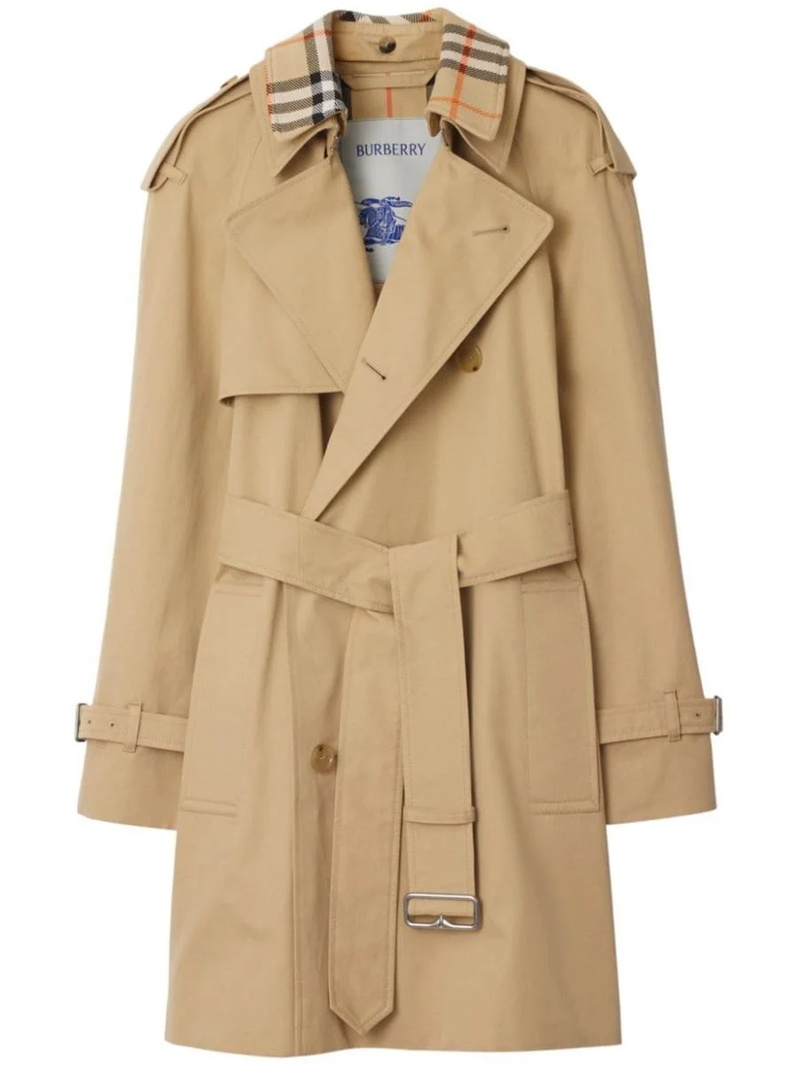 beige cotton double-breasted button fastening belted waist detachable collar wide notch lapels epaulettes long sleeves belted cuffs two side welt pockets American rear vent straight hem Vintage Check-pattern lining This piece fits true to size. We recommend you get your regular size Model is 1,75m / 5ft 8in wearing size 8 (UK) Gender: Women Material: LINING: COTTON 100%, VISCOSE 82%, OUTER: COTTON 100%, POLYESTER 18% Color: Beige Made in: GB Product ID: 8094940B8626 *Import tax/duty will be calculated at checkout (If applicable)