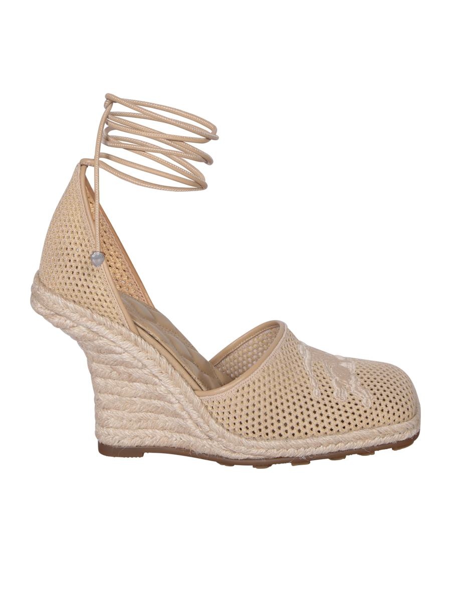 Wedge espadrilles with rope heel, crochet upper, and lace-up closure.. An exclusive Burberry creation, these espadrilles blend elegance and comfort. Crafted with delicate crochet detailing and enhanced by a rope wedge, they are perfect for a distinctive summer look Gender: Women Color: Beige Made in: Imported Product ID: 8099273 C1702 *Import tax/duty will be calculated at checkout (If applicable)
