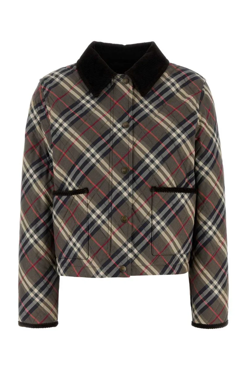 Corduroy-trimmed quilted checked cotton jacket Multi