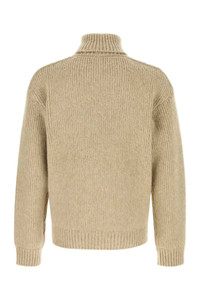 This Burberry pullover is made of heavy knit fabric with a blend of wool and brushed cashmere. It features a high collar, ribbed hems, and a brass B-shaped charm at the bottom. The fit is relaxed. Gender: MEN Material: 95%WOOL 5%CASHMERE Color: Beige Made in: IT Product ID: 8098656 C1167 *Import tax/duty will be calculated at checkout (If applicable)