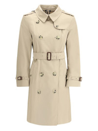 medium beige cotton gabardine weave classic collar throat latch epaulettes long sleeves belted cuffs belt loops detachable belt two side button-fastening pockets buttoned central rear vent straight hem Vintage Check-pattern lining double-breasted button fastening This piece fits true to size. We recommend you get your regular size Model is 1,75m / 5ft 8in wearing size 8 (UK) Gender: Women Material: LINING: COTTON 100%, VISCOSE 100%, OUTER: COTTON 100% Color: Beige Made in: Imported Product ID: 8079404A1366 *Import tax/duty will be calculated at checkout (If applicable)