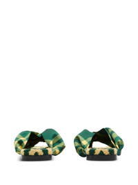 fern green/citron pale yellow check pattern thong strap open toe branded footbed flat sole Heel 0,4 in / 1 cm Gender: Women Material: LINING: VISCOSE 70%, SHEEPSKIN 30%, OUTER: POLYESTER 90%, SHEEPSKIN 10%, SOLE: LEATHER 100% Color: GREEN Made in: IT Product ID: 8080145B8682 *Import tax/duty will be calculated at checkout (If applicable)