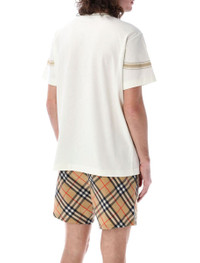 Striped cotton t-shirt by Burberry London. Featuring: Ribbed crew neck Short sleeves Embroidered Equestrian Knight Design at chest Slim fit Model is 1,90 m and wears size L Gender: Men Material: 100% COTTON Color: ICE Made in: PT Product ID: 25P8104051#C1412 *Import tax/duty will be calculated at checkout (If applicable)