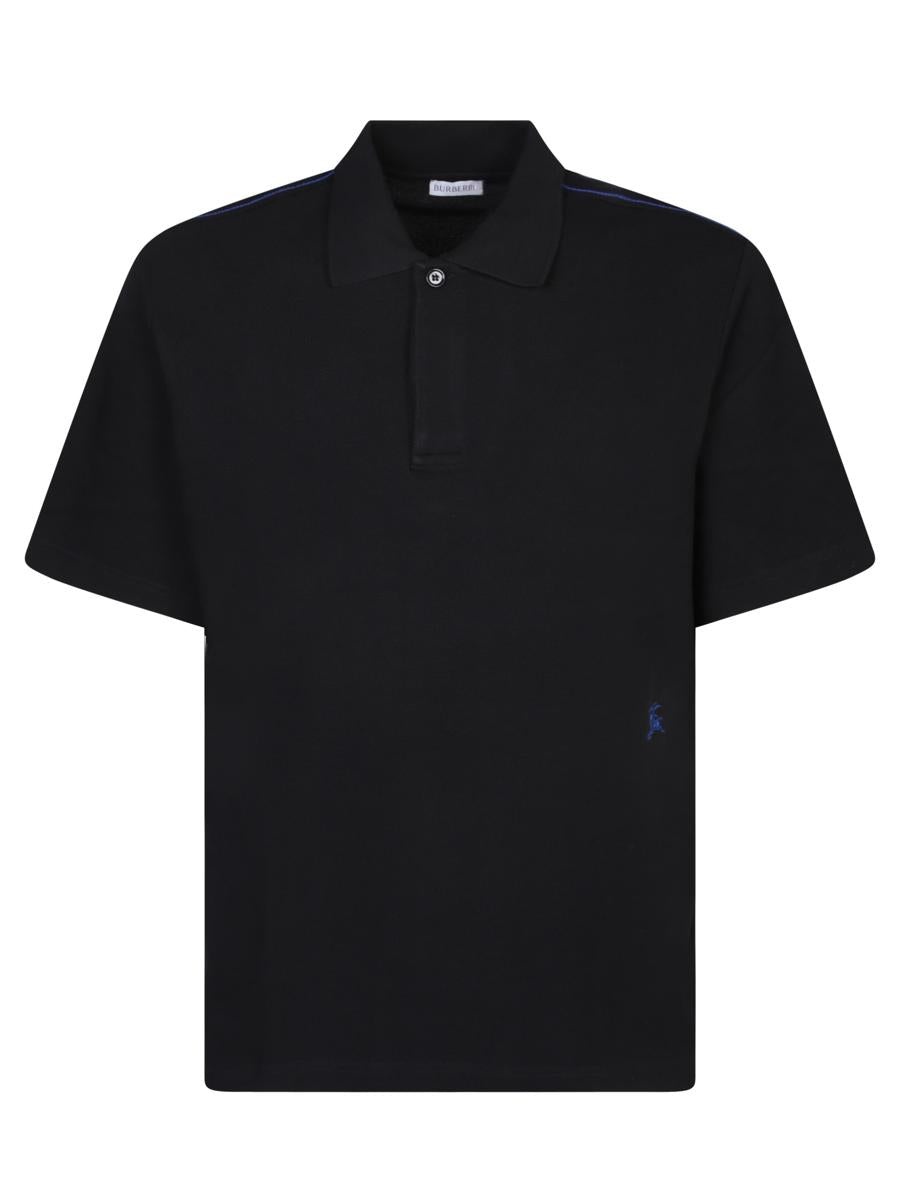 Cotton pique polo shirt by Burberry Short sleeves. Button fastening. Contrasting jacquard logo Knight to the front. Gender: Men Material: 100% COTTON Color: Black Made in: Imported Product ID: 8083600 A1189 *Import tax/duty will be calculated at checkout (If applicable)
