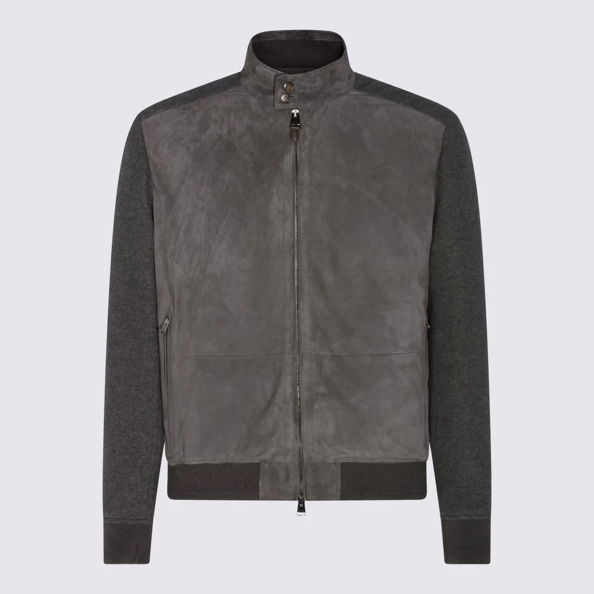 Dark grey leather jacket from Canali featuring buttoned collar, long sleeves, zip fastening, suede details, elasticated cuffs and hem and regular vestibility. Size Type: Man IT Gender: Men Material: 100%LEATHER Color: MULTICOLOR Made in: Italy Product ID: O70477LE00145505 *Import tax/duty will be calculated at checkout (If applicable)