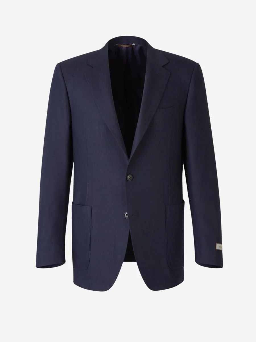 Blazer by Canali Regular fit Linen and wool blend fabric Partially lined Straight two-button fastening Front patch pockets Two interior pockets Pochette pocket Double back vent Back length: 76 cm Made in Italia Model size: 50 52% Linen, 48% Wool. Lining: 100% Cupro Gender: Men Material: 52% LINEN, 48% WOOL. LINING: 100% CUPRO Color: MIDNIGHT BLUE Made in: IT Product ID: 21288AE02571_305azul *Import tax/duty will be calculated at checkout (If applicable)