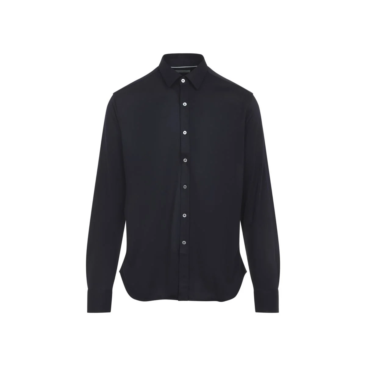 Canali Navy Blue Wool Jersey Shirt. Pure navy blue wool shirt, pointed collar, front buttoned fastening, long sleeves, buttoned cuffs, round hem, tonal stitching. Gender: Men Material: 100%WOOL Color: BLUE Made in: Italy Product ID: CSL7077.GN03652_301 *Import tax/duty will be calculated at checkout (If applicable)