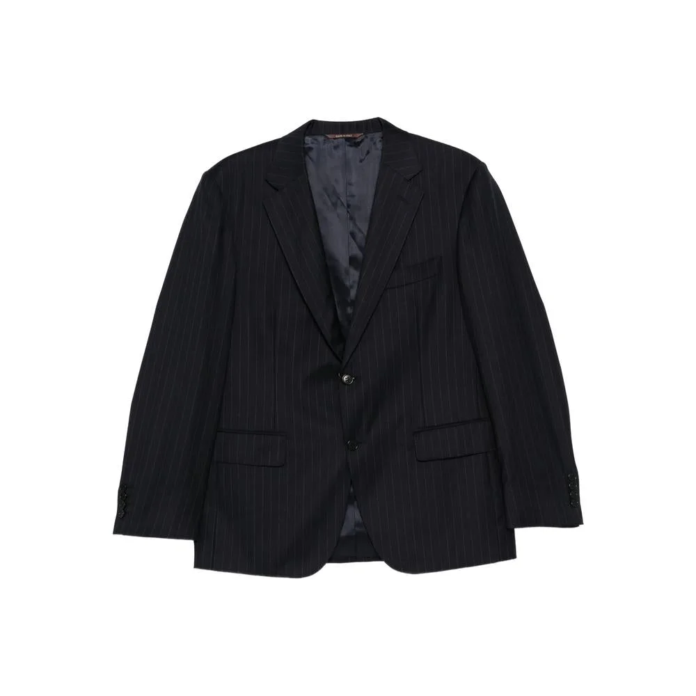 Dark blue pinstripe pattern two-button fastening notched lapels Gender: Men Material: FABRIC: 100.0% Color: BLUE Made in: Imported Product ID: BF00068 12280/18 C 345 *Import tax/duty will be calculated at checkout (If applicable)