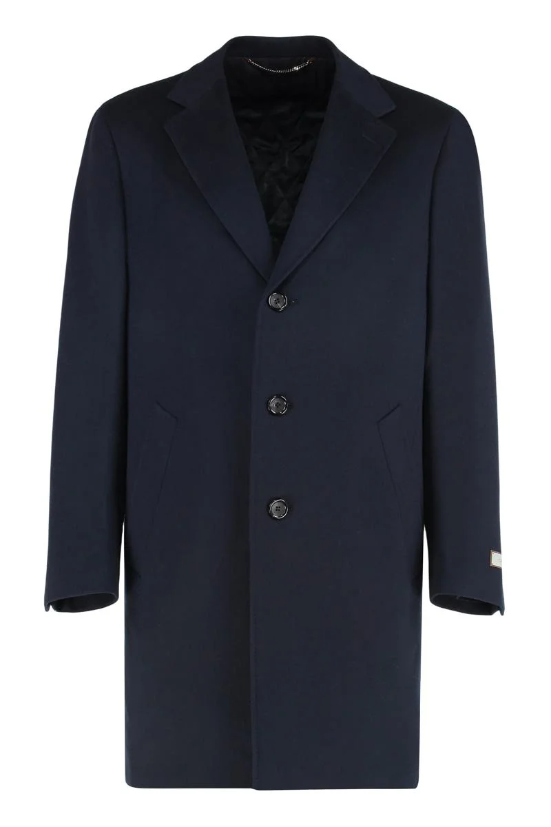 Wool coat Coat made of high-quality fabric, featuring a classic cut and an elegant design. It has a front closure with buttons, a collar with lapels, and two side pockets, making it both functional and stylish. Perfect for formal occasions or for a sophisticated look in everyday life. 100% Wool Gender: Men Material: WOOL Color: BLUE Made in: Italy Product ID: FU0552155918_303 *Import tax/duty will be calculated at checkout (If applicable)