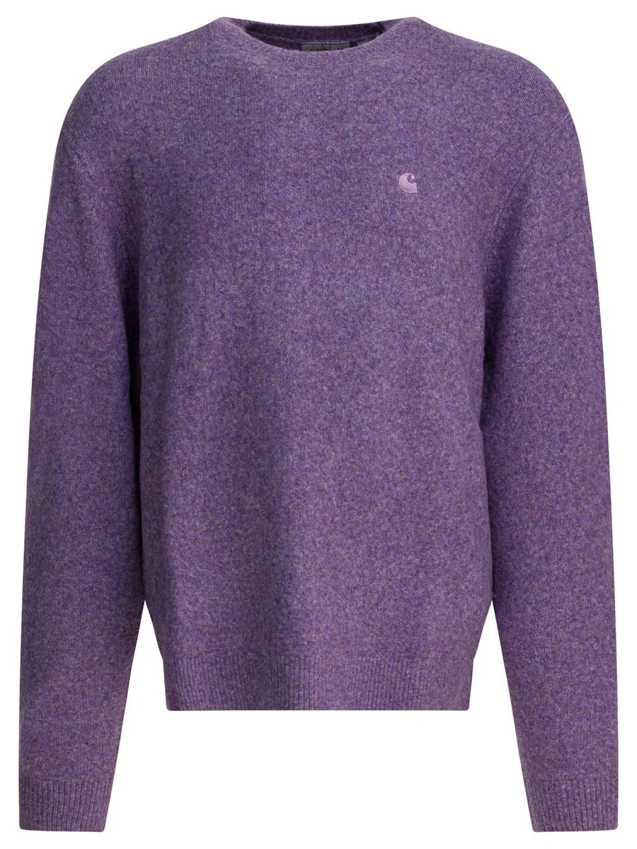 Carhartt WIP "Curtis" sweater made of a melange wool yarn blend with a knit construction. The garment features a loose silhouette and crew neck construction, with long sleeves featuring dropped shoulders. The edges of the collar, cuffs and hem are ribbed finished for shape retention. On the front, the Carhartt logo is tone-on-tone embroidered, integrating into the fabric surface. || - Solid color - Long sleeves - Crew neck - Dropped shoulder - Ribbed trim on neck, cuffs and hem - 51% acrylic, 32% polyester, 11% nylon, 4% wool, 2% elastane fabric - Tone-on-tone logo embroidery on front - Eco-friendly product - Relaxed fit Extra Description: Solid colourRelaxed fit;Long sleeves Gender: Men Material: 51% ACRYLIC 32% POLYESTER 11% NYLON 4% WOOL 2% ELASTANE Color: PURPLE Made in: Imported Product ID: I0353943B0XX.03 *Import tax/duty will be calculated at checkout (If applicable)