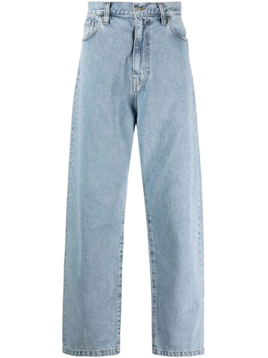 light blue cotton blend denim butterfly fastening classic five pockets belt loops wide leg logo patch to the rear This piece fits true to size. We recommend you get your regular size Model is 1,84m / 6ft 1in wearing size 32 (WAIST CM) Gender: Men Color: CLEAR BLUE Made in: TN Product ID: I0304680135 *Import tax/duty will be calculated at checkout (If applicable)