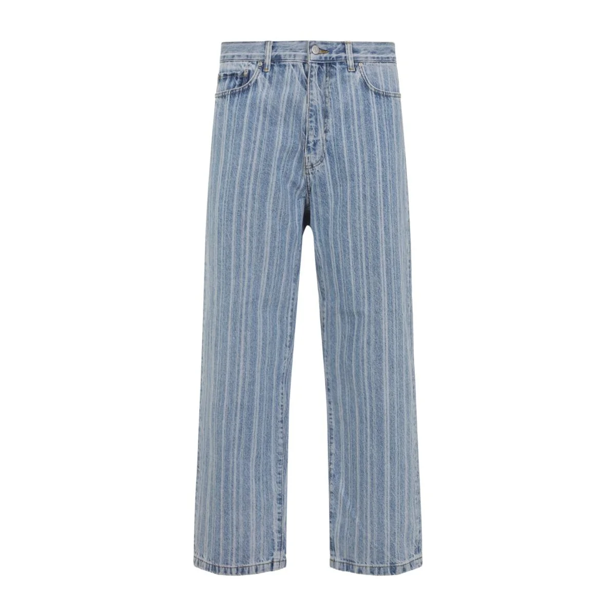 Carhartt Wip Rylan Light Blue Cotton Jeans. Crafted from light blue striped cotton denim, mid-waist, belt loops, 5-pocket design, front button and fly-zip fastening, squared logo patch on the back, loose tapered fit. Gender: Men Material: 100%COTTON Color: BLUE Made in: Imported Product ID: I03556232H12_ *Import tax/duty will be calculated at checkout (If applicable)
