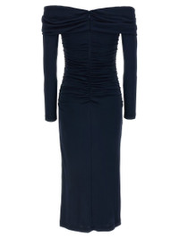 Off-the-shoulder 'Off-Shoulder 3/4 SLV Ruched Midi' fluid fabric dress with rigid U-neck and dropped shoulder straps, 3/4 sleeves, front and back draping, back zip closure, underskirt Gender: Women Material: 80% ACRYLIC, 20% POLYAMIDE Color: BLUE Made in: Imported Product ID: P2515N501JRS493 *Import tax/duty will be calculated at checkout (If applicable)