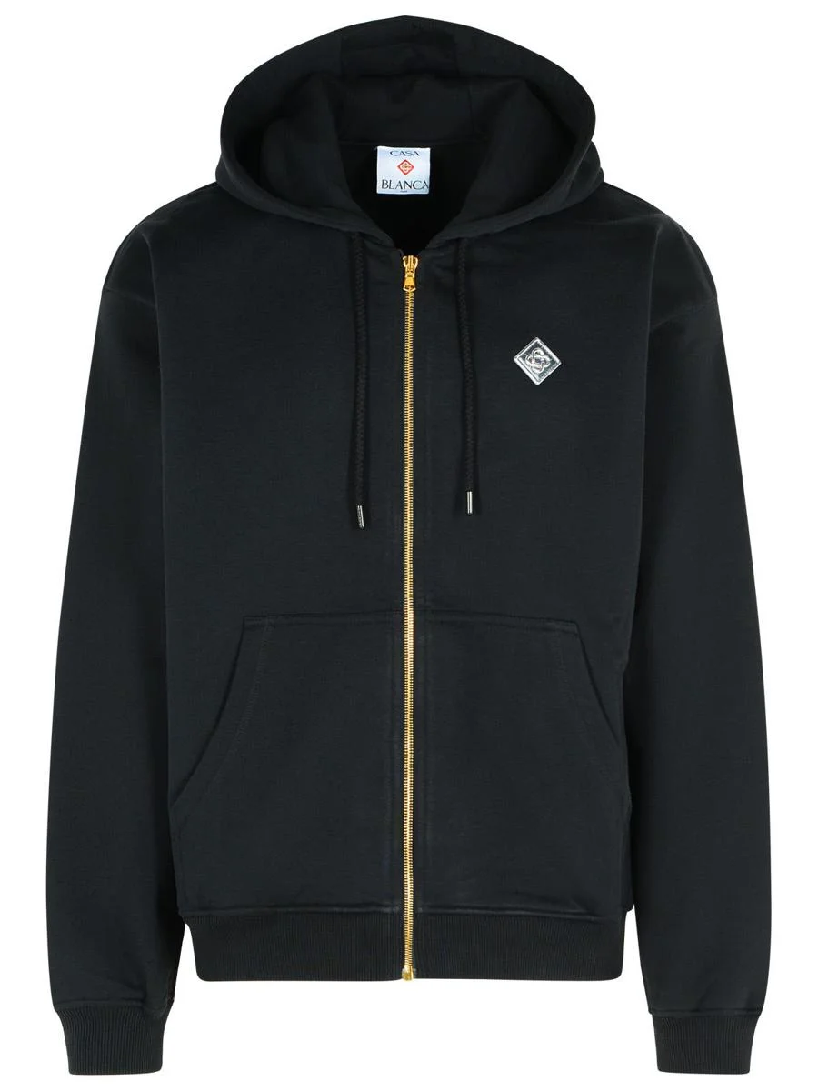 Drawstring hood, zipper closure, contrast logo patch on the chest, front pouch pocket, embossed contrast maxi logo on the back, ribbed side inserts, ribbed hem and cuffs Gender: Men Material: 100% COTTON Color: Black Made in: Portugal Product ID: M-AW25-JTP-408-02CASA CHROME *Import tax/duty will be calculated at checkout (If applicable)