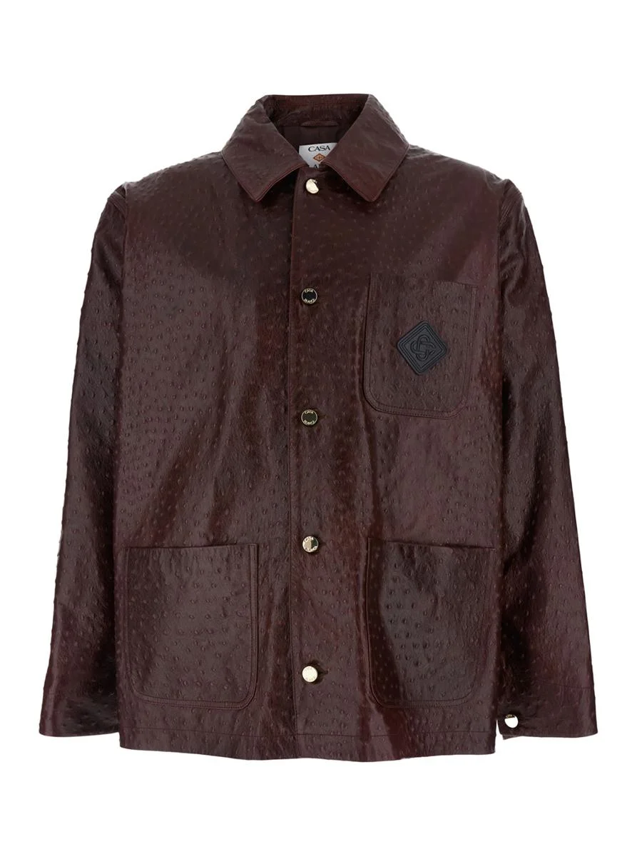 Casablanca Bordeaux Jacket With Logo Patch On The Front And Ostrich Skin Effect In Leather Man