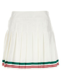 'Casa way' pleated silk skirt with band print, invisible zip closure Gender: Women Material: 100% SILK Color: WHITE Made in: Imported Product ID: WF23SK03201CASAWAY *Import tax/duty will be calculated at checkout (If applicable)