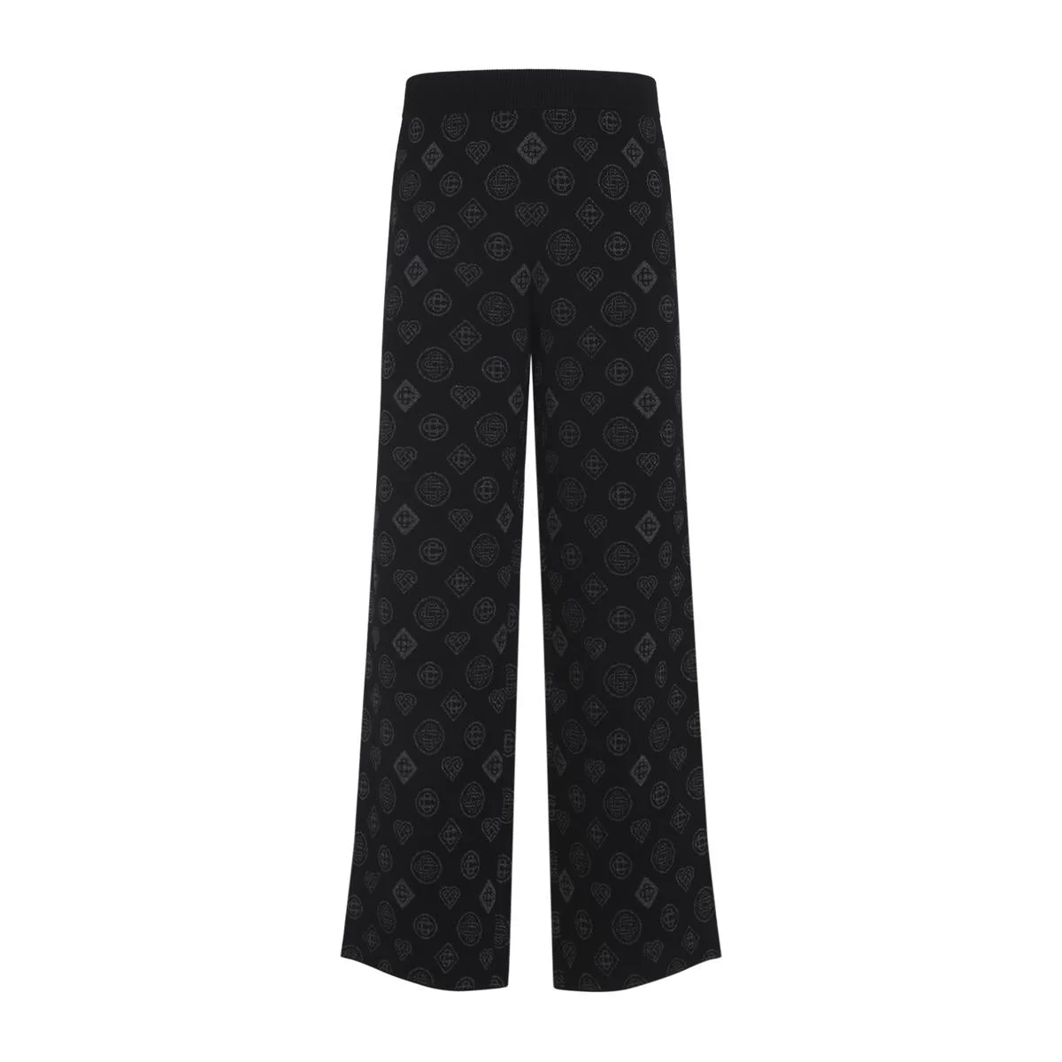 Casablanca Black City Jacquard Trousers. Crafted in viscose, polyester, polyamide, rayon and elastane blend. Elastic ribbed waist, side pockets, wide leg, straight hem, contrasting grey signature logo pattern. Gender: Men Material: 64%VISCOSE 27%POLYESTER 2%POLYAMIDE 6%RAYON 1%ELASTANE Color: Black Made in: Imported Product ID: MAW25KW112501_ *Import tax/duty will be calculated at checkout (If applicable)