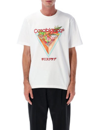 Celebrating Japanese culinary culture, the Casablanca Tennis Club Icon T-shirt features seasonal artwork highlighting the beauty of raw ingredients in a refined, minimal layout. Crafted from soft organic cotton, this short-sleeve essential combines thoughtful storytelling with a relaxed silhouette and classic crew neck finish. 100% organic cotton Relaxed fit Seasonal food-inspired graphic print Ribbed crew neckline Short sleeves Andrea is 1,90 m and wears size L Gender: Men Material: 100% ORGANIC COTTON Color: WHITE Made in: Portugal Product ID: 25AM-AW25-JTS-001-01#WHITE *Import tax/duty will be calculated at checkout (If applicable)