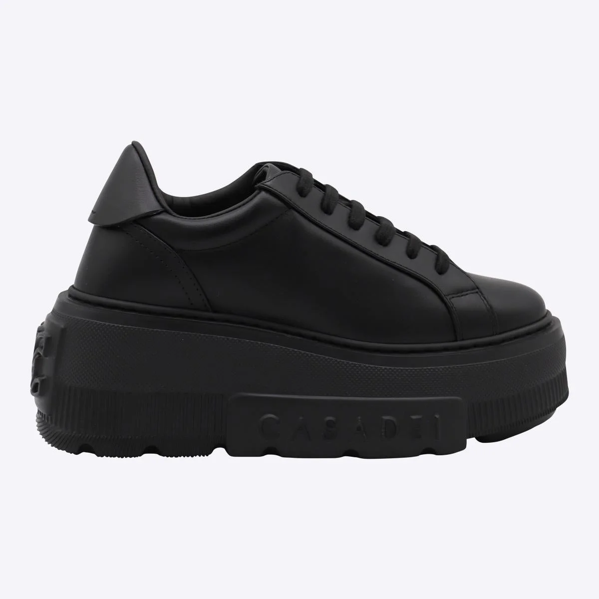 Black sneakers from Casadei featuring round toe, cotton laces, oversize sole and logo detail. Size Type: Shoes Woman IT Gender: Women Material: COVER 100%LE SOLE 100%ELASTANE Color: Black Made in: Italy Product ID: 2X894U070NSALEN9000 *Import tax/duty will be calculated at checkout (If applicable)