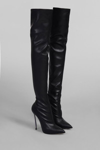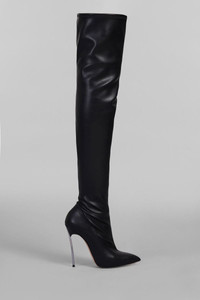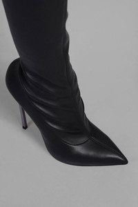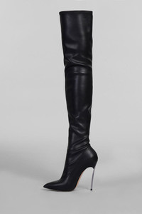 Blade High heels boots in black leather, cuissards, slip on, pointed toe, stitching detail, silver heel detail, 120 mm heel, 100% leather Gender: Women Material: LEATHER Color: Black Made in: Italy Product ID: 403392_1T068Y120MC2274 *Import tax/duty will be calculated at checkout (If applicable)