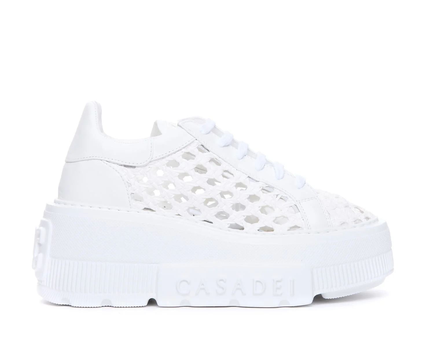Casadei white Nexus sneakers, fabric and leather upper, laces closure, round toe, back logo, Eu size (IT) Gender: Women Material: 50%LEATHER, 50%FABRIC, RUBBER SOLE Color: WHITE Made in: IT Product ID: 2X895U0701T02689999 *Import tax/duty will be calculated at checkout (If applicable)