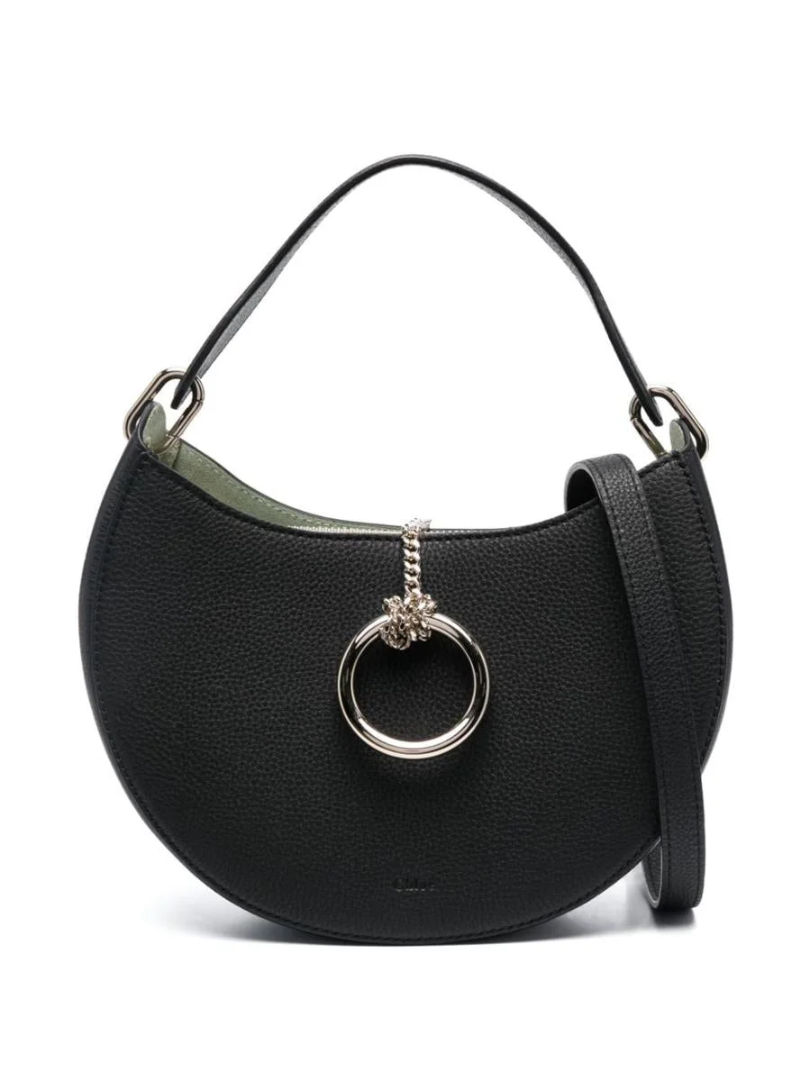 small Arlene ring-embellished tote bag from CHLOÉ featuring black, calf leather, logo tag, gold-tone hardware, single circular top handle, top zip fastening and adjustable detachable shoulder strap. Width 8,66 in / 22 cm Height 5,51 in / 14 cm Depth 3,54 in / 9 cm Handle 4,72 in / 12 cm Strap 21,65 in / 55 cm Gender: Women Material: LINING: CALF LEATHER 100% OUTER: CALF LEATHER 100% Color: BLACK Made in: IT Product ID: CHC23AS164K61ARLENE001 *Import tax/duty will be calculated at checkout (If applicable)